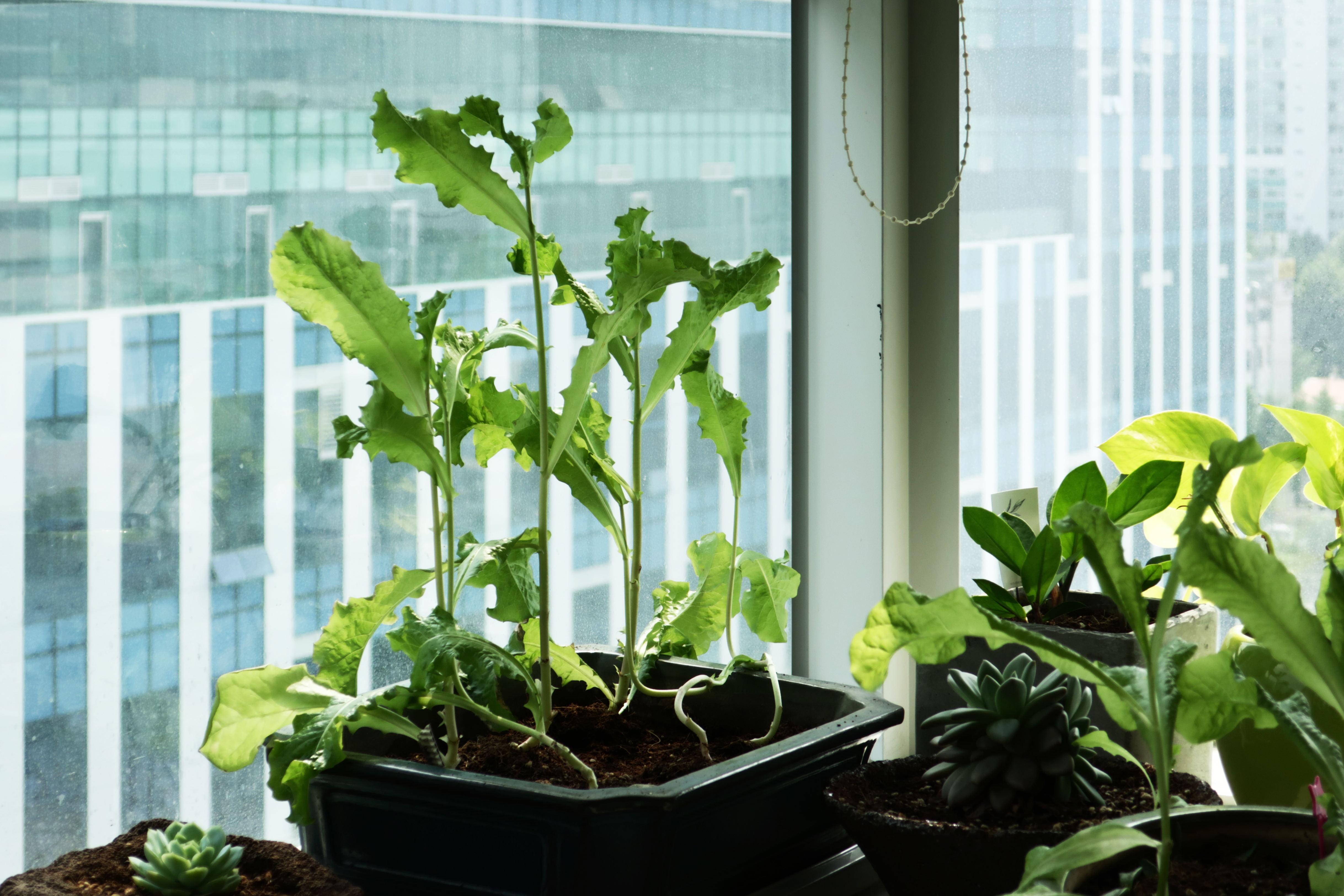 사무실에서 (다른 직원이)키우고 있는 상추가 무럭무럭 잘 자라고 있다.