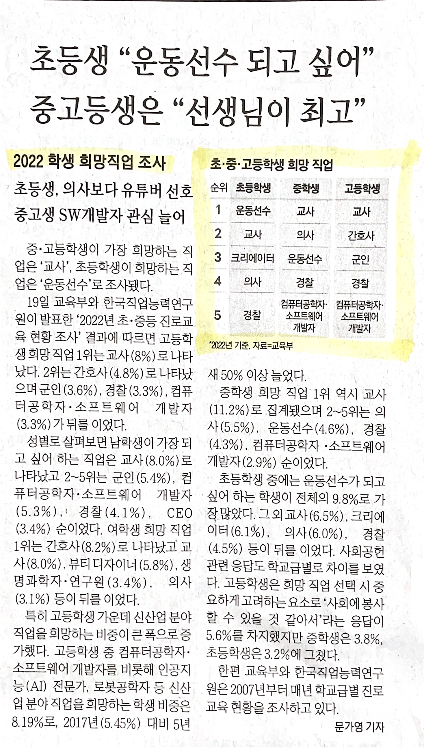 중고등생은 “선생님이 최고”
