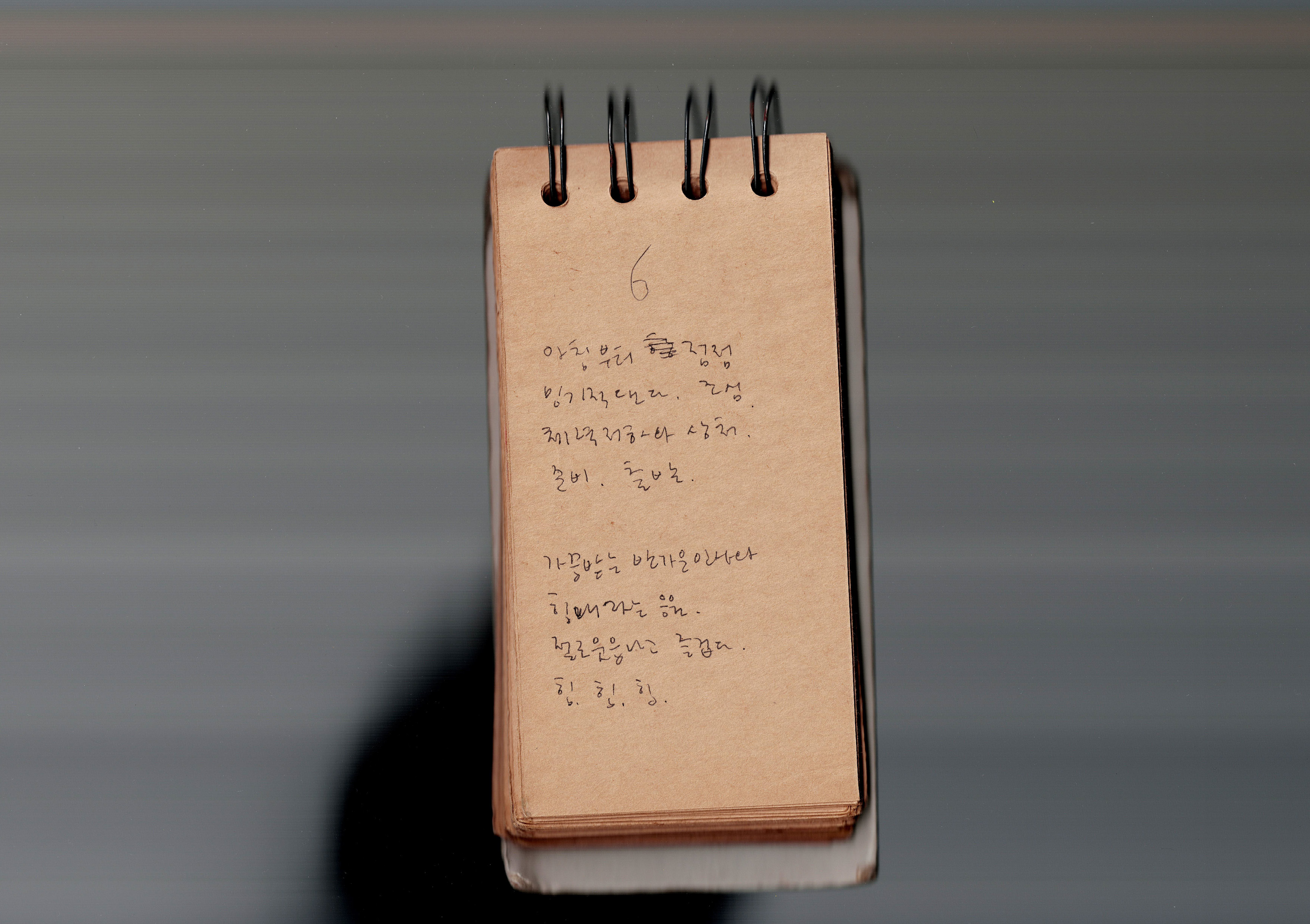 ↑ 땀 냄새가 진동한다. 어느 아침이건 그랬던 것 같은데, 오늘은 더 처진다. 말들도 없고 힘없는 목소리. 기운들 내라. 버스 타고 서울 관통. 의정부로 간다. "생각할 시간이 필요해요..." 아무리 시간을 줘도 항상 나올 만한 소리. 생각할 시간은 언제나 존재한다. 다만 생각은 끊이지 않으니까. 항상. 시간이 모자라.